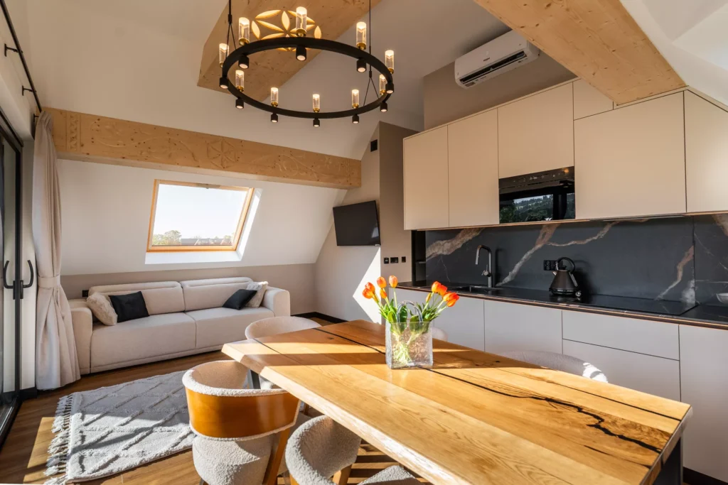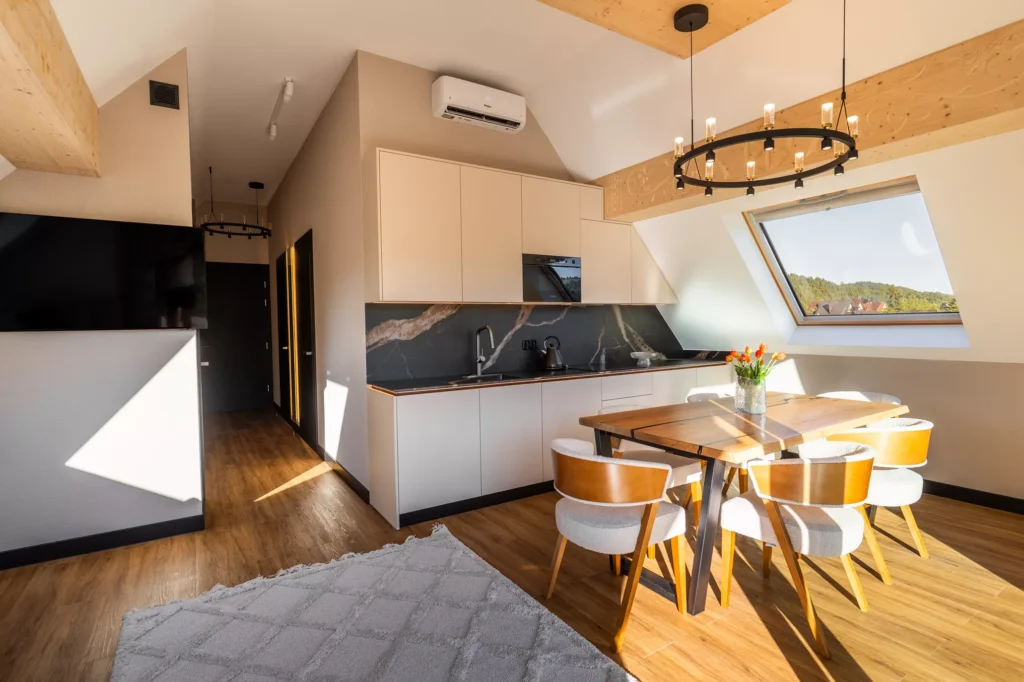 Przestronny 6-osobowy apartament, z tarasem lub balkonem, zaprojektowany z dbałością o detale i wysoki standard wykończenia.